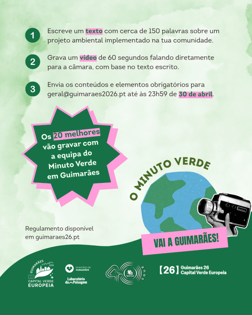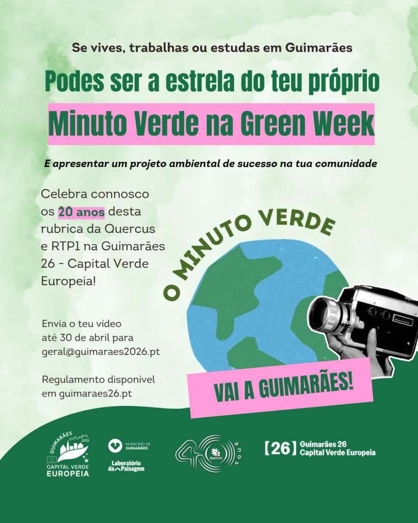 Esta parceria entre a Quercus e a Guimarães 26 cruza assim duas celebrações – os 20 anos do Minuto Verde e a distinção da cidade como Capital Verde Europeia 2026 – promovendo a educação ambiental com o envolvimento direto dos cidadãos.
